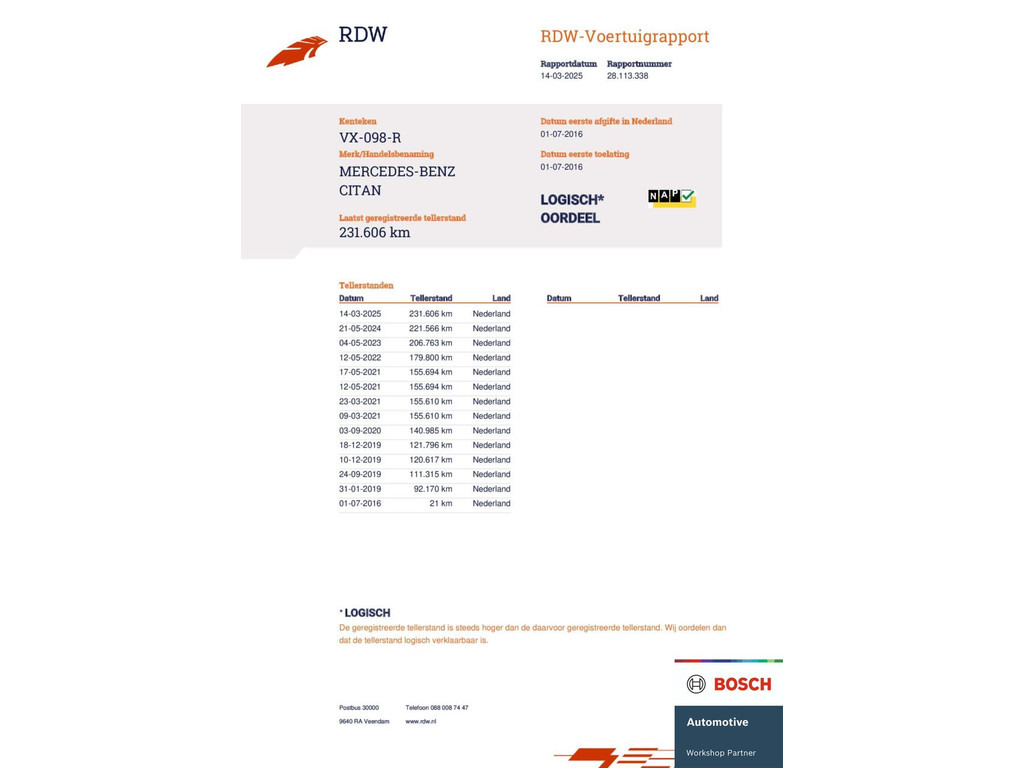 231.606 km Kilometerstand