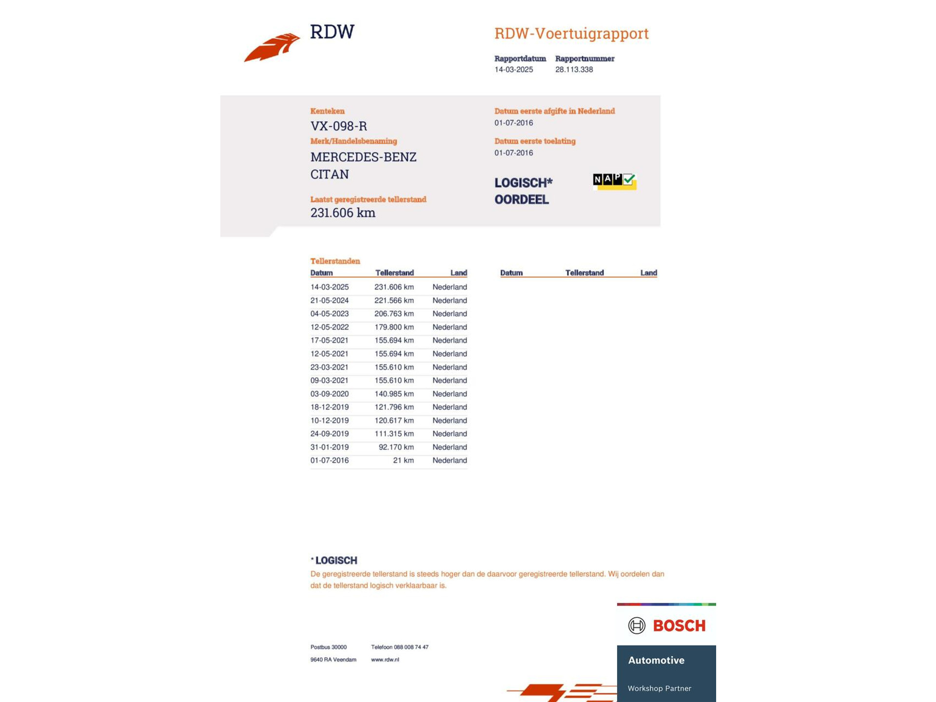 231.606 km Kilometerstand